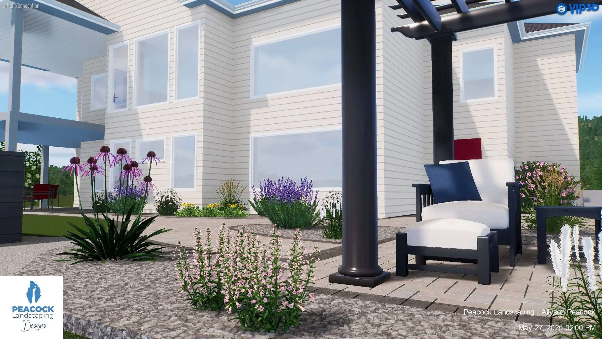 At Peacock Landscaping, 3D renderings are included with every landscape design. This allows homeowners to visualize layout, scale, and how different features connect, whether it’s how a patio meets the house, how elevation changes are handled, or how planting shapes the space over time.